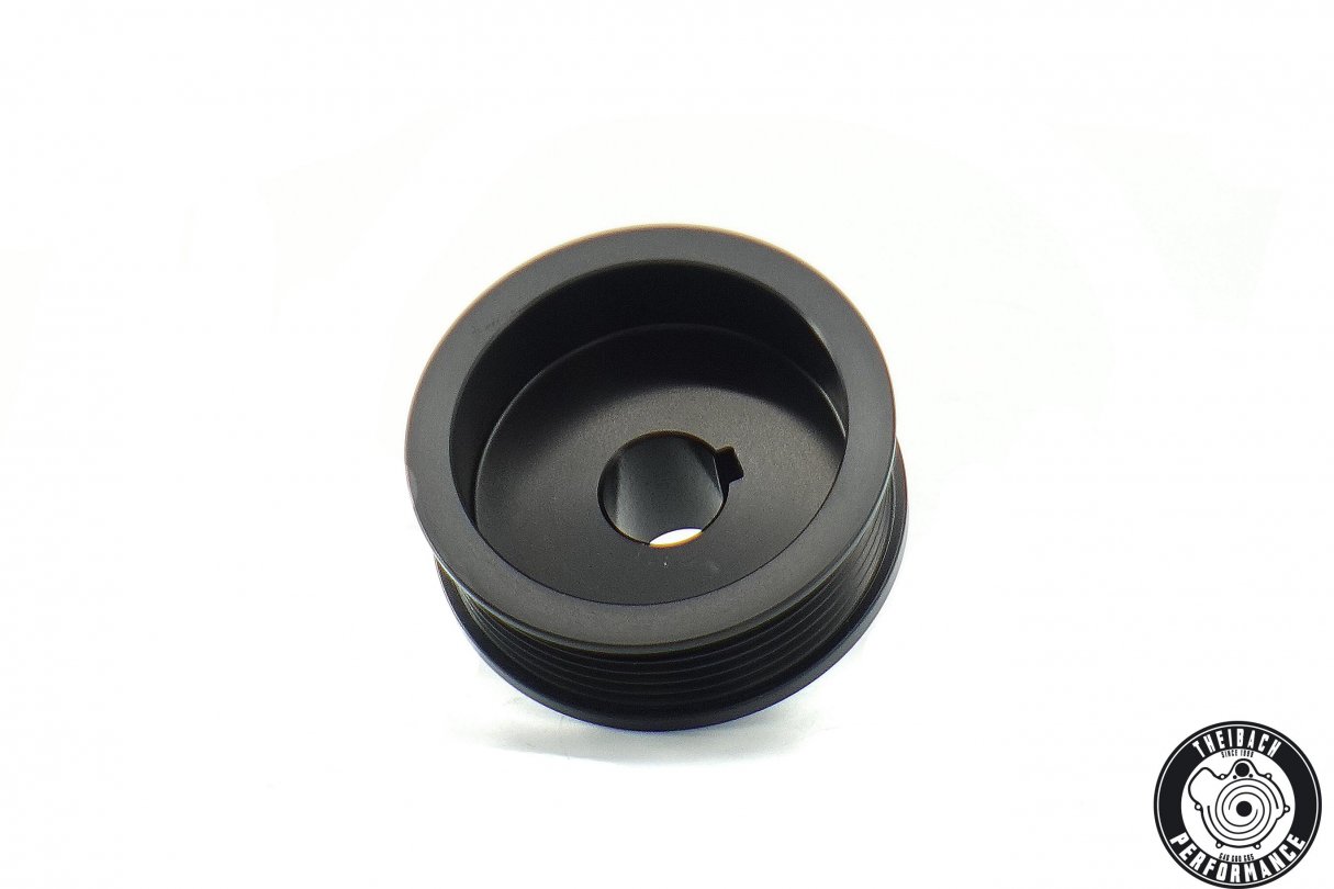 Das Laderrad ist auch hochfestem Alu 7075 CNC gedreht. Ein passender Tuningchip, kurzer Keilrippenriemen od. gewindeverstellbarer Riemenspanner werden benötigt.